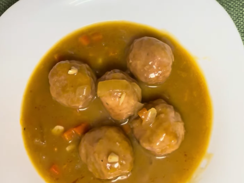 Compra albóndigas de pollo ya hechas, o pídelas al carnicero y haz solo la salsa. También puedes usar una picadora y mezclarlo todo en un momento sin complicarte. En lugar de hacer el sofrito desde cero, puedes usar cebolla ya picada congelada y ajo en polvo. Añade caldo, un poco de tomate frito si lo tienes a mano y espesa con maicena. En quince minutos tienes un plato casero, sabroso y listo para servir.