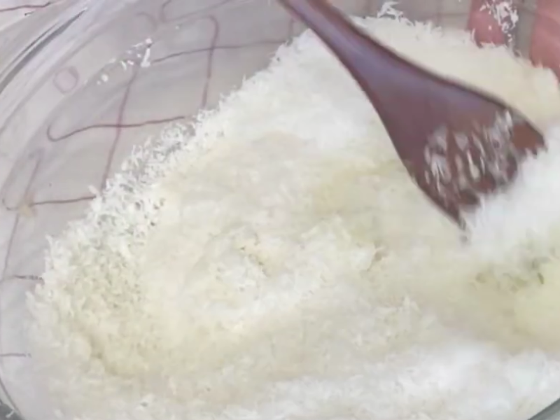 Solución: añade más coco rallado poco a poco, hasta que tome consistencia.