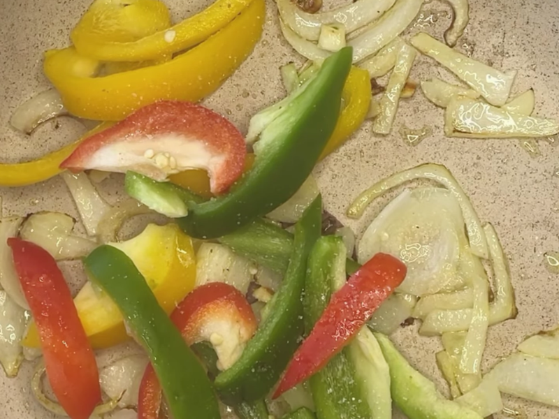 Yo empiezo siempre pelando y cortando las cebollas en juliana fina. Lo mismo con los pimientos: en tiras. Los ajos, picados, me gusta que suelten sabor sin dominar.
