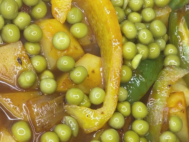 Añade el caldo de verduras, espera que vuelva a hervir y añade los guisantes. Deja que se cocine todo unos 15 minutos.