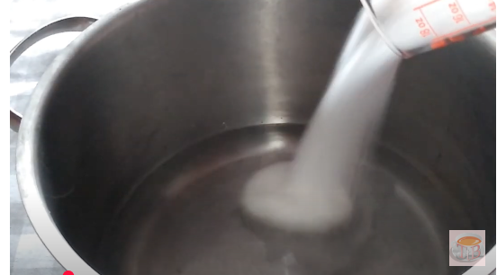 Añade el agar en polvo Remueve bien hasta que se disuelva completamente. Cuando empiece a hervir cuenta dos minutos.