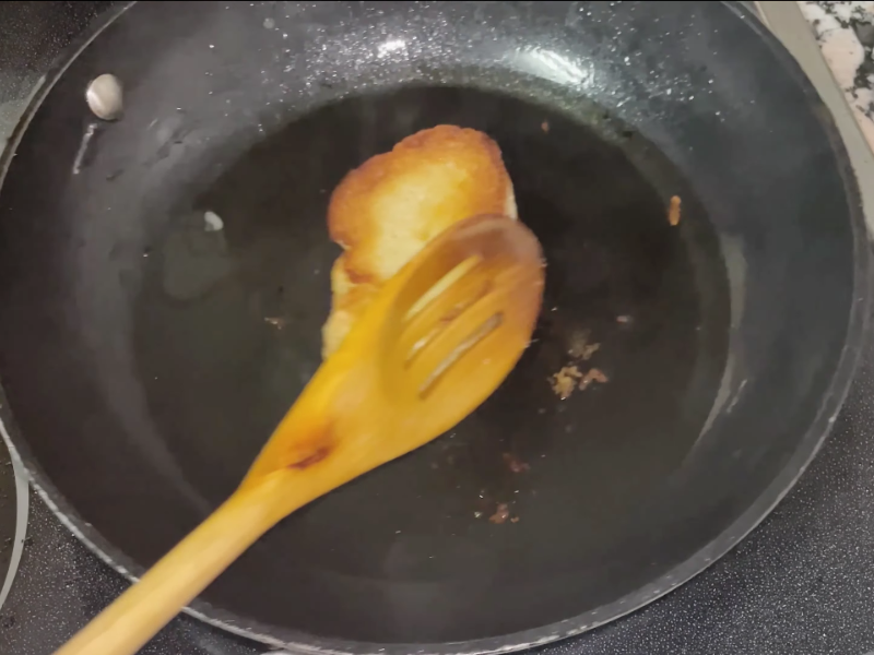 A continuación, fríe la rebanada de pan y retira.