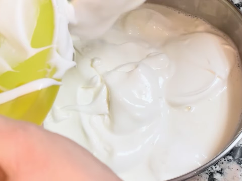 Cuando vayas a tomar la leche, empieza a batir las claras a punto de nieve.