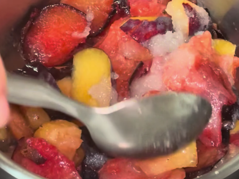Pon la olla a fuego medio-bajo y remueve con una cuchara de madera. Poco a poco, la fruta se irá deshaciendo y el jugo se volverá más denso.