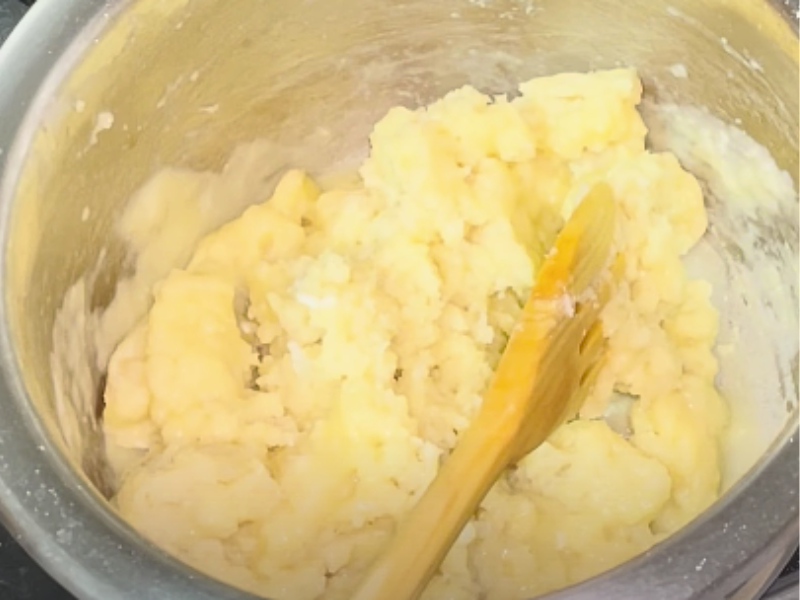 Añade los huevos de uno en uno, y mézclalos con la masa.