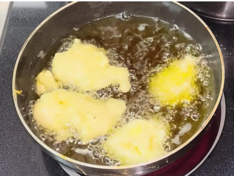 Freír hasta que los buñuelos estén dorados por ambos lados.