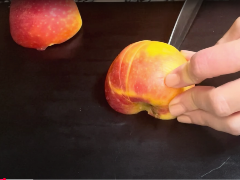 Corta cada manzana por la mitad, y en cada mitad haz costes transversales sin llegar hasta el final.