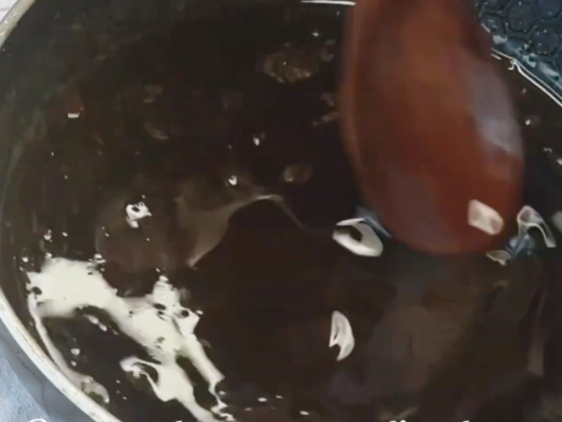 Fuera del fuego, añade el café y mezcla hasta que se disuelva.