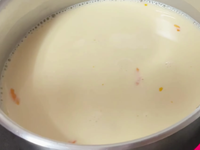 Mezcla los huevos con la vainilla, la leche y el azúcar y calienta a fuego suave.