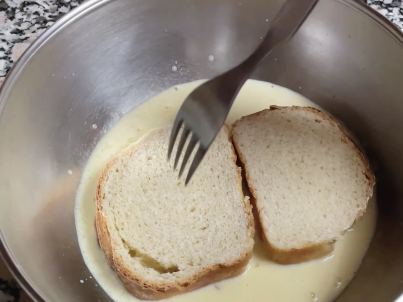 Cuando el pan absorbe demasiado líquido puede romperse al moverlo o al freírlo. Es importante que la miga esté bien impregnada, pero sin llegar a deshacerse.