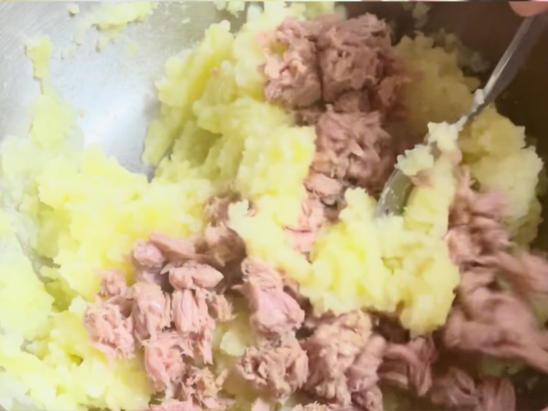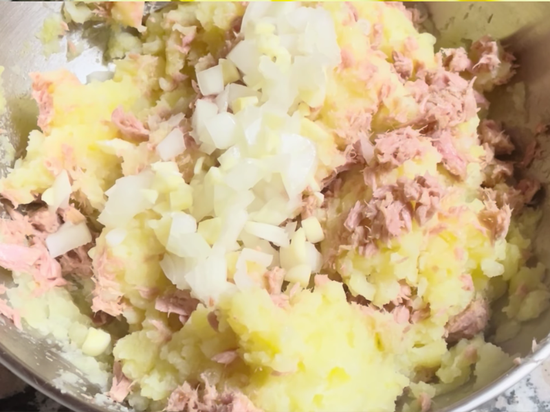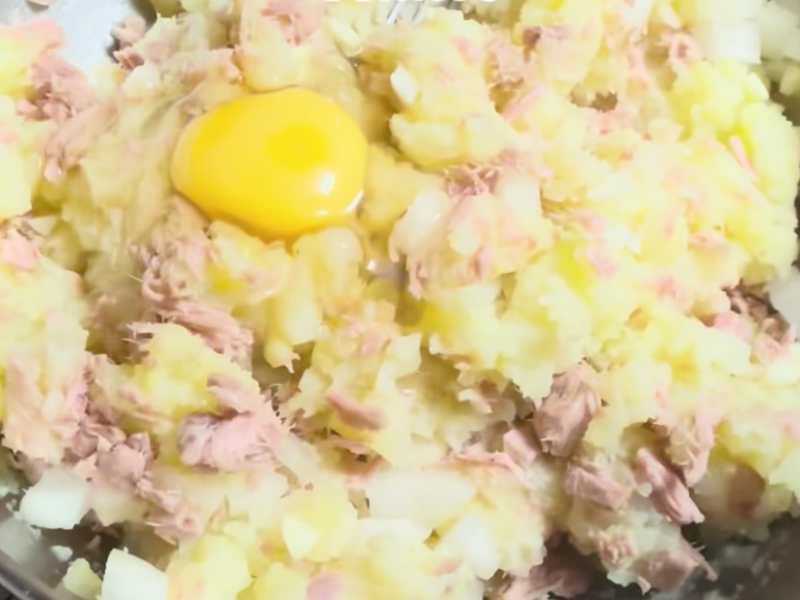La base es muy sencilla. La patata cocida aporta textura, suavidad y cuerpo. El atún añade sabor, un punto salado y ese toque que evita que el conjunto resulte plano. A partir de ahí, se añaden ingredientes que ayudan a unir y dar forma, como el huevo y el pan rallado.