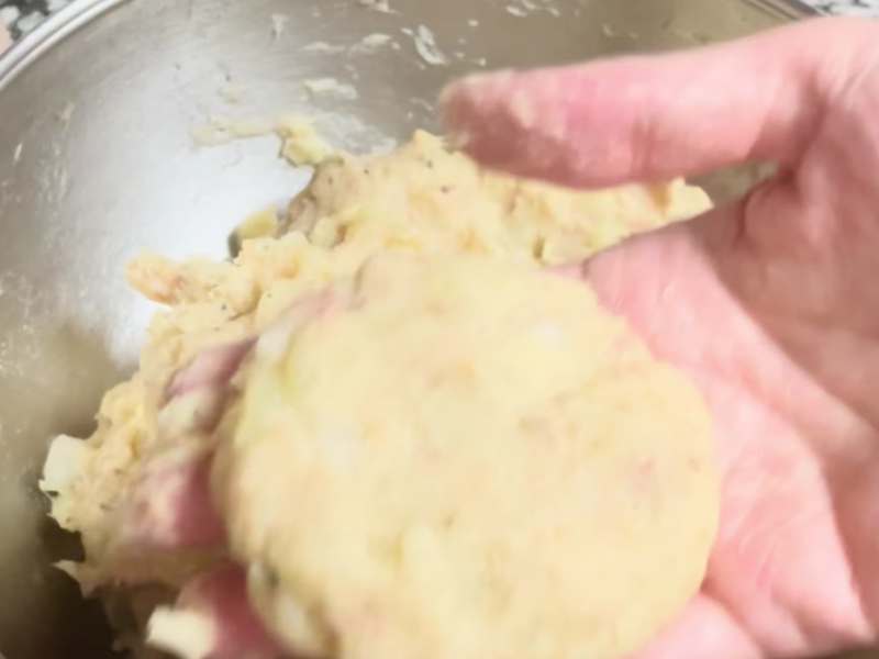 Durante ese tiempo, el pan rallado termina de absorber la humedad y la mezcla se vuelve más estable. Esto hace que las tortitas mantengan mejor la forma al cocinarlas y que la textura sea más uniforme.