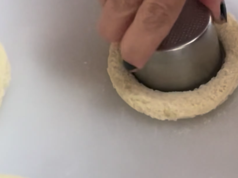 Para cada volován necesitarás cinco rebanadas de pan : uno entero y cuatro con un agujero en el centro para formar la pared del volován.