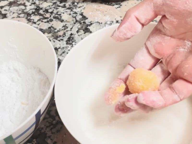 Este paso aporta el acabado clásico y evita que las yemas se peguen entre sí