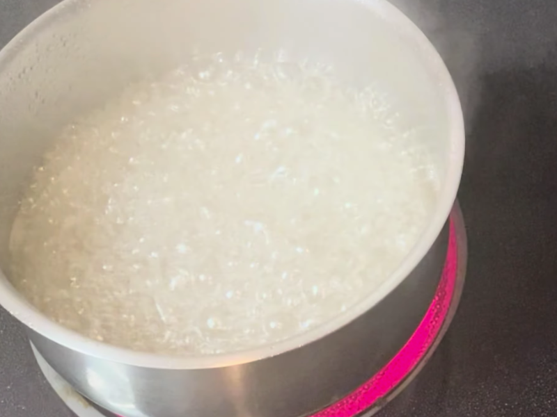 Una vez retirado del fuego, deja reposar el almíbar unos minutos. Este paso es fundamental.
