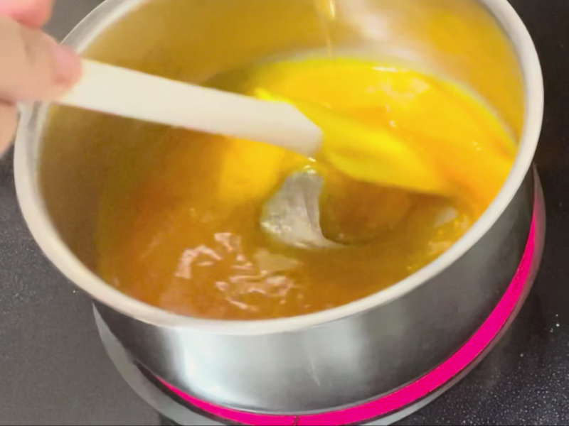 Cuando veas que el líquido empieza a tener una textura ligeramente más densa, como un jarabe, retira el cazo del fuego.